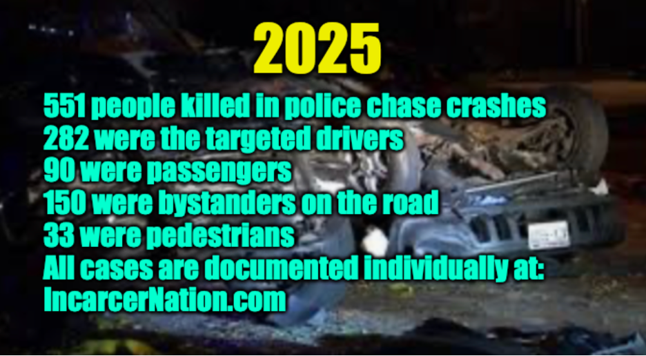 Police chase/vehicular fatalities involving police for 2025 are listed individually here.