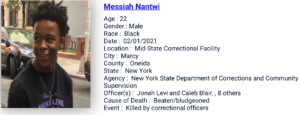 for the in-custody death of Messiah Nantwi. He was stomped, beaten and bludgeoned to death in serial beatings by 3 officers inside of Mid-State Correctional Facility. More in link.